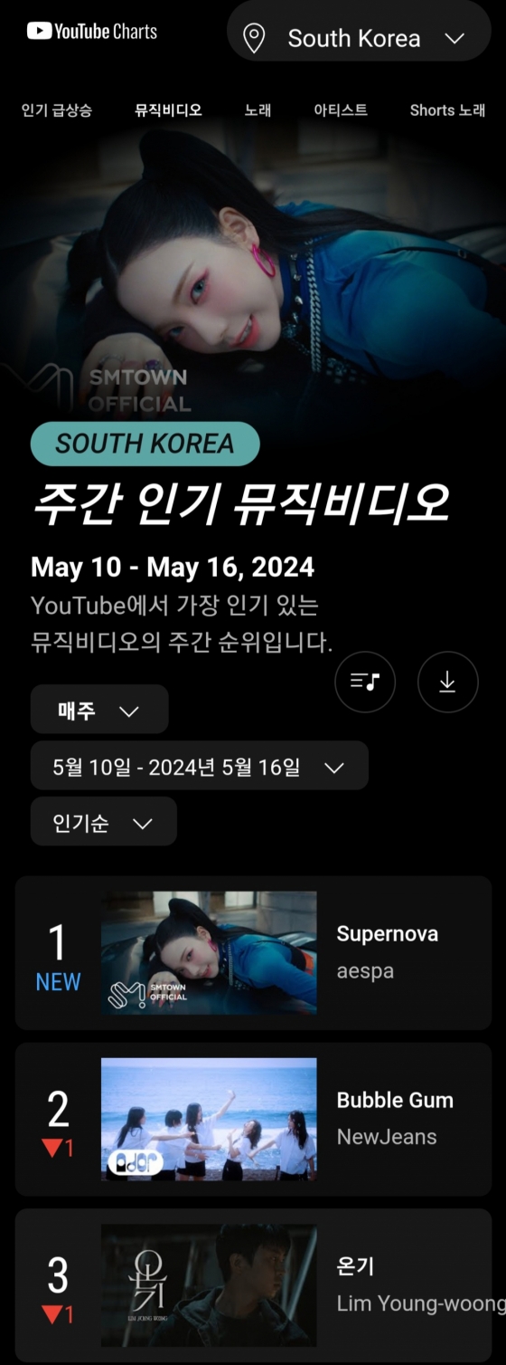 가수 임영웅이 유튜브 주간 인기 뮤직비디오 차트 톱3에 오르며 인기를 빛냈다.