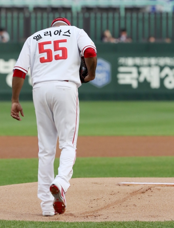 고개 숙인 외국인 투수 로에니스 엘리아스(36)에 SSG 랜더스 이숭용 감독도 할 말을 잃었다. 그저 다독일 뿐이었다.