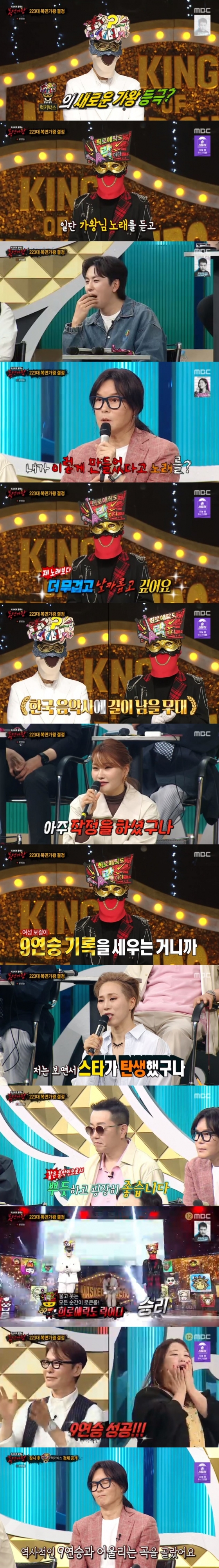 '복면가왕'의 '희로애락도 락이다'가 9연승에 성공했다.