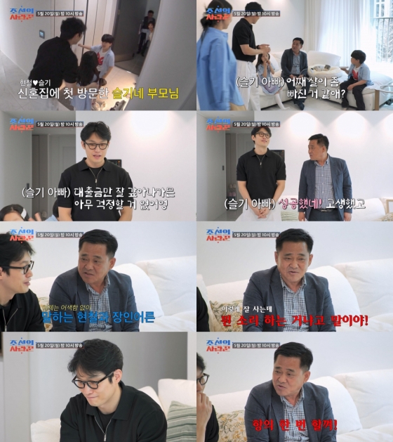 이어 그는 "내가 와서 잘 살고 있는 모습을 봐야지. 그래야 내가 '어떤 사람들이 댓글을 그렇게 달았냐고 한마디 해줄 수 있지. 이렇게 잘 살고 있는데 뭔 소리 하는 거냐고 말이야. 어딘지 몰라도 내가 항의 한 번 할 거야"라며 한때 불거졌던 김슬기 유현철의 파혼설에 속상했던 마음을 드러냈다. 장인어른의 말을 듣던 유현철은 미안한 듯 만감이 교차하는 표정을 지었다.