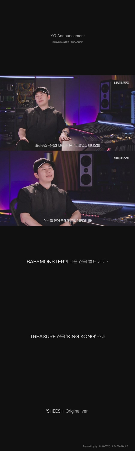 YG엔터테인먼트는 20일 공식 블로그에 'BABYMONSTER / TREASURE | YG ANNOUNCEMENT (2024 Release Plan)'를 게재했다. 양현석 총괄 프로듀서 인터뷰 영상으로, 소속 아티스트들의 컴백을 위해 모든 스태프들이 총력을 기울이고 있음을 짐작할 수 있다.