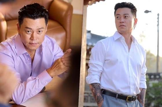 이서진은 압도적 눈빛과 꼿꼿한 자세, 올백으로 넘긴 머리와 이마에 드러난 상처, 풀어헤친 셔츠 단추와 근육질 팔을 둘러싼 문신 등으로 조폭 이인자 김득팔의 날카로운 기세를 엿보게 했다.