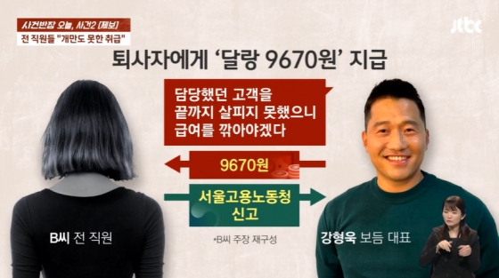 20일 오후 방송된 JTBC '사건반장'은 강형욱 회사 전 직원 B 씨와의 인터뷰를 전격 공개했다.