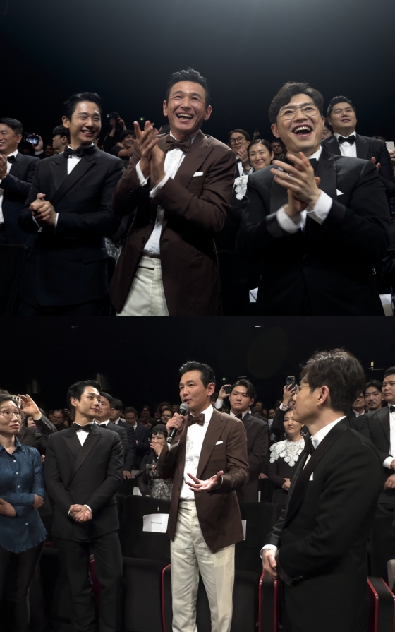 마이크를 넘겨받은 황정민은 "여러분들의 무한한 애정과 사랑과 감사의 마음을 담고 잘 돌아가겠다. 그리고 이 따뜻함을 저희 영화를 사랑하는 고국 팬들께 꼭 전하겠다"고 말했다.