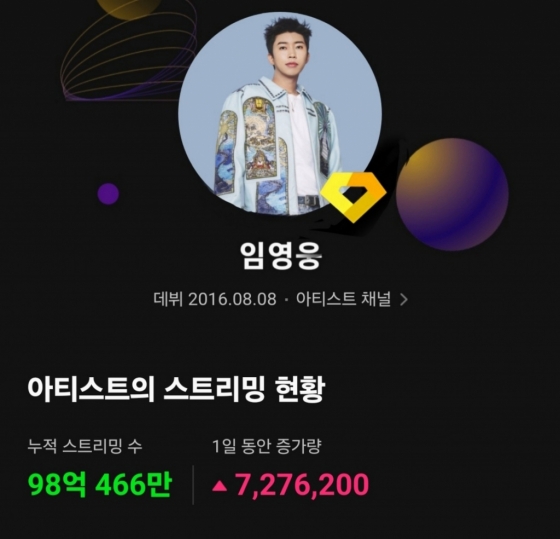 임영웅은 5월 22일 기준 국내 주요 음원 플랫폼 멜론(Melon)에서 누적 스트리밍 98억 회를 넘어섰다. 5월 9일 97억 스트리밍 달성 후 13일 만에 또 새로운 기록을 썼다.