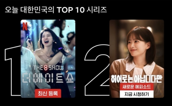 '더 에이트 쇼'는 넷플릭스에서 시청할 수 있으며, JTBC '히어로는 아닙니다만'은 매주 토, 일 오후 10시 30분에 방송된다.