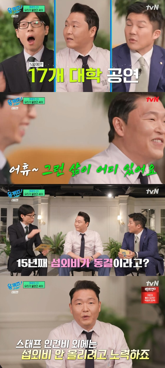 '유퀴즈' 싸이 "5월에만 대학 축제 17군데..15년째 섭외비 동결? 미세하게 올라"