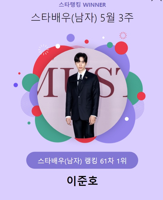 이준호는 지난 16일 오후 3시 1분부터 23일 오후 3시까지 진행된 5월 3주(61차) 스타랭킹 스타배우 남자 랭킹 투표에서 38만3477표를 얻으며 1위에 올랐다.