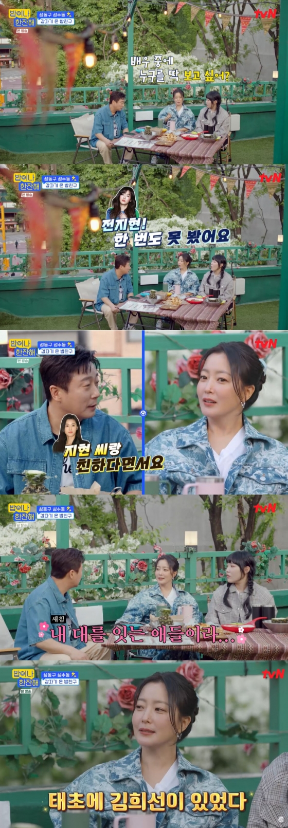 "배우 중 누가 보고 싶냐"라는 질문에 이은지는 배우 김수현을, 이수근은 배우 전지현을 꼽았다. 이수근은 연예계 생활하는 동안 한 번도 전지현을 실제로 본 적이 없다며 김희선에게 "지현 씨랑 친하다면서요"라고 물었다. 이에 김희선은 "(전지현은) 내 대를 잇는 애"라고 새침한 표정으로 답했다.