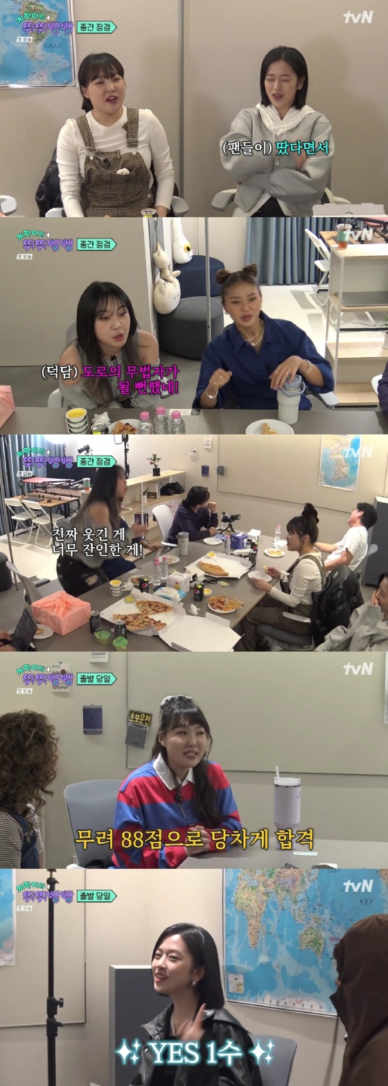 이어 이은지는 "우리 못 따면 9시 뉴스 나올 기세"라고 웃으며 "현재 필기 붙었고, 머트라인이 60점인데 60점으로 붙었다. 운전면허 시험에 등록한 상황이고, 기능 시험, 도로 주행이 남았다"고 전했다.