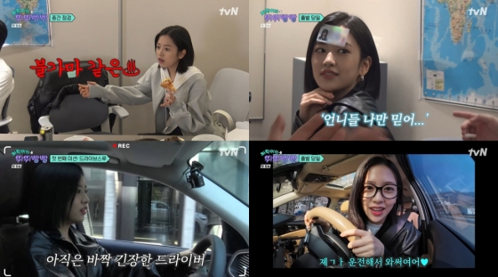 멤버들을 지락카에 태우고 목적지 가평으로 출발한 안유진은 긴장했던 것과 달리 순조롭게 운전을 시작하며 멤버들을 안심시켰다.