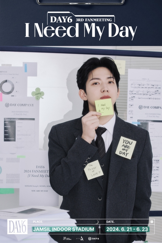 DAY6는 오는 6월 21일부터 23일까지 사흘간 서울 송파구 잠실실내체육관에서 세 번째 공식 팬미팅 'DAY6 3RD FANMEETING 'I Need My Day''('아이 니드 마이데이')를 열고 팬들과 만난다. 이를 앞두고 JYP엔터테인먼트는 공식 SNS 채널에 성진, Young K(영케이), 원필의 개별 티저 콘텐츠를 공개하고 팬미팅을 향한 기대감을 고조시켰다.