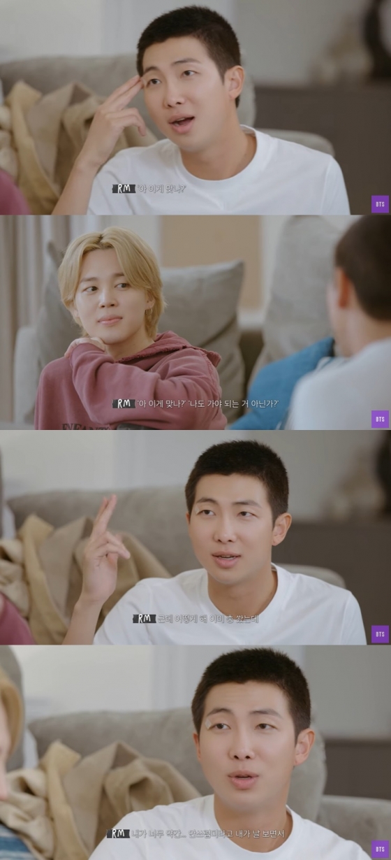 RM은 "군 입대 관련해서 저희가 긴 시간 고통받지 않았냐. 하물며 술집 갔다가도 '걔네가 그게 맞냐'라는 말을 너무 많이 들었다. 그때 개인사가 많이 생겨서 제가 어떻게 해야 할지 고민이 됐다. 그런 김에 이런 걸 솔직하게 토해내자고 생각했다"고 전했다. 지민은 "형은 멤버들에게, 팬들에게 해줄 말도 많았고 스트레스도 많이 받았다"라고 했다.