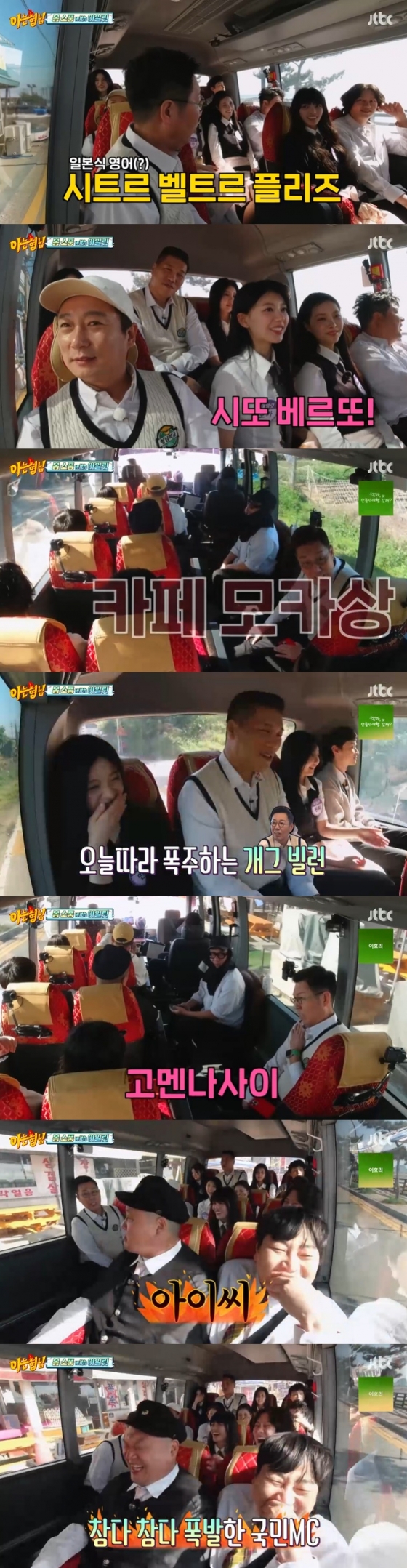 그러나 김영철은 이동 버스 안에서도 일본인 멤버들을 위해 "모카, 카페 모카상"이라고 하는가 하면, 성대모사 개인기 "미안합니다~"를 "고멘나사이~"로 선보였고, 강호동이 질려하며 고함을 지르자 아일릿 멤버들은 웃음을 터뜨렸다.