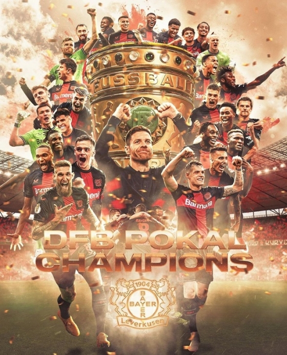 올 시즌 레버쿠젠은 공식 53경기에서 43승9무1패라는 역대급 성적을 써냈다. 먼저 레버쿠젠은 분데스리가 사상 최초 무패우승(28승6무)을 거머쥐었다. '절대 1강' 바이에른 뮌헨마저 밀어냈고, 레버쿠젠 구단 창단 120년 만에 이뤄낸 역사적인 우승이었다. 포칼에서도 영광을 만들었다.