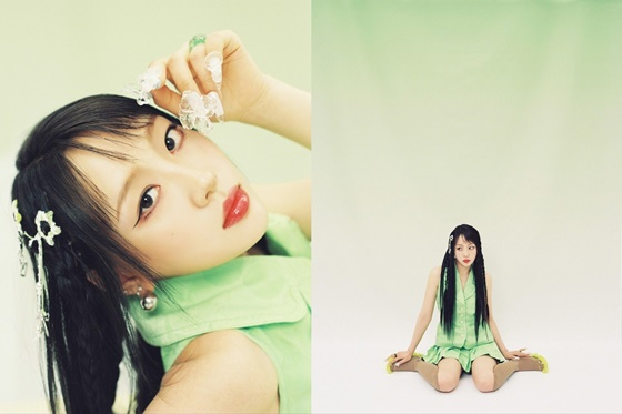 공개된 사진 속 이브는 머리에서 발끝까지, 초록빛 착장으로 산뜻한 매력을 과시했다. 특히, 이브의 손끝에 피어난 꽃장식과 머리핀이 조화롭게 어우러져 신비로운 분위기를 자아낸다.