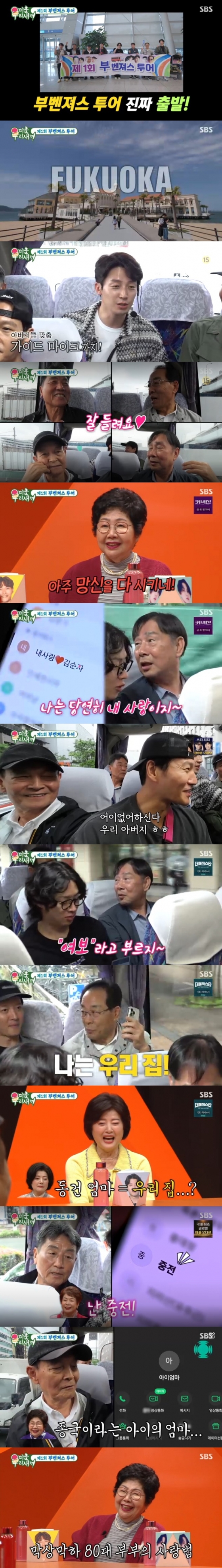 한편 이날 방송에서는 미우새 '제1회 부벤져스 투어'가 공개됐다. 허경환 김종국 이동건 김희철 부자는 공항에서 조우하며 서로에 대해 알아가는 시간을 가졌다. 허경환 부자는 함께 공항이 처음이라며 어색한 대화를 나눴고 김종국 부자는 비타민에 진심이신 이동건 아버지 앞에서도 절약 정신을 몸소 드러내기도 했다. 마지막으로 등장한 김희철 아버지는 연하남편이자 프러포즈를 받은 이력으로 시선을 모으기도 했다.