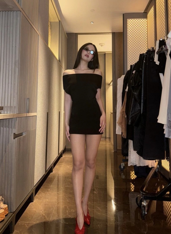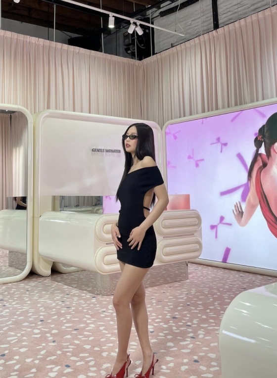 공개된 사진 속에서 제니는 블랙 미니 드레스를 입고 긴 생머리를 늘어뜨린 채 카메라 앞에서 포즈를 취하고 있다. 그의 작은 얼굴과 완벽한 직각 어깨 라인이 보는 이들의 시선을 사로잡는다.