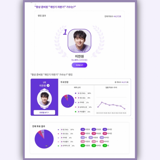 이찬원은 총투표수 4만 4572표 중 51.46%인 2만 2935표를 득표, 1위를 차지했다.