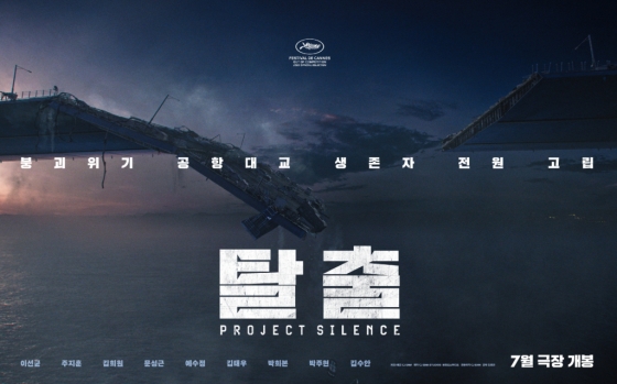 이선균, 주지훈, 김희원 등 탄탄한 연기력을 갖춘 배우들이 출연하는 재난 스릴러 '탈출: PROJECT SILENCE'(이하 '탈출')가 오는 7월 개봉을 확정 짓고, '붕괴 포스터'와 '타겟 포스터' 2종을 공개했다. '탈출'은 짙은 안개 속 연쇄 추돌 사고가 일어나고, 붕괴 위기의 공항대교에 풀려난 통제불능의 군사용 실험견들로부터 살아남기 위해 극한의 사투를 벌이는 사람들의 이야기.