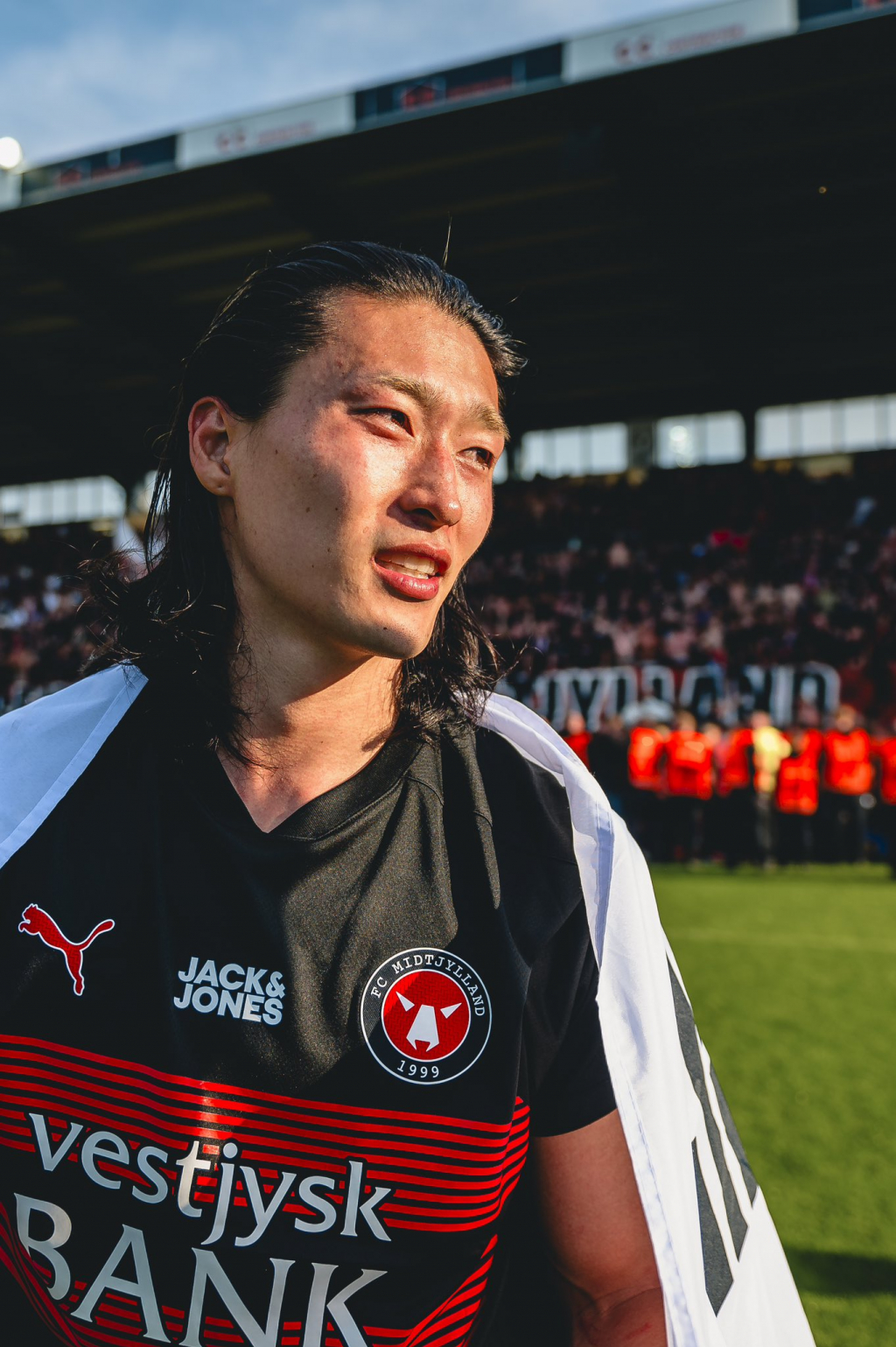 감격스러운 우승에 조규성도 기쁨을 감추지 못했다. 경기가 끝난 뒤 그라운드에서 태극기를 두르고 활짝 웃기도 했다. 미트윌란 수비수 이한범(22)도 조규성과 함께 우승 분위기를 즐겼다.