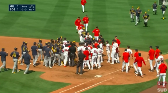 충돌은 1-1로 맞서던 7회 초에 나왔다. 보스턴은 투구 수가 93개였던 하우크를 내리고 우완 크리스 마틴을 투입했다. 마틴은 올 시즌 6개의 홀드와 3.10의 평균자책점, 0.93의 WHIP(이닝당 출루허용률)를 기록하며 불펜에서 중요한 역할을 맡은 선수다.