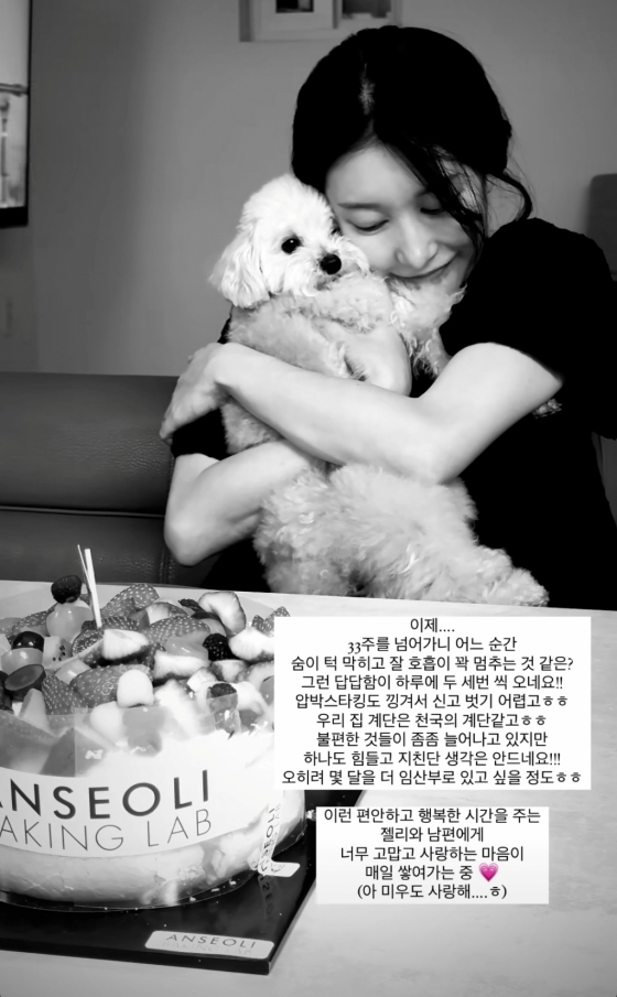 아야네는 27일 자신의 인스타그램에 "이제 33주를 넘어가니 어느 순간 숨이 턱 막히고 호흡이 꽉 멈추는 것 같은 답답함이 하루에 두세 번씩 온다"는 글과 함께 일상을 공개했다.