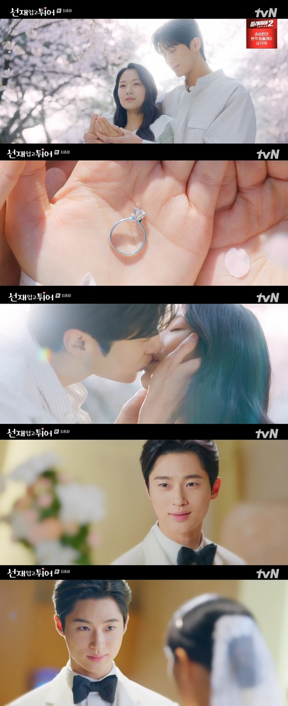 28일 오후 방송된 tvN 월화드라마 '선재 업고 튀어' 최종화에서는 류선재(변우석 분)가 임솔(김혜윤 분)에게 프러포즈했다.