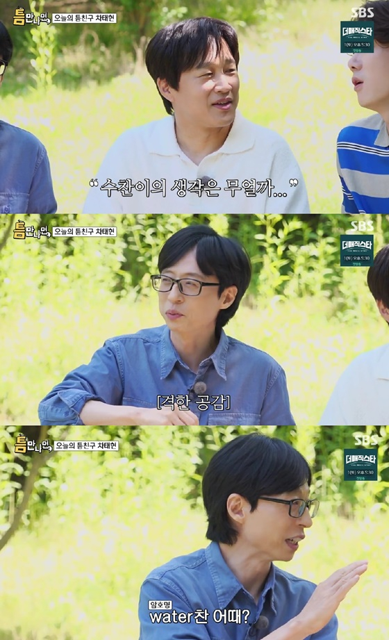 차태현은 "'수찬이의 생각은 무엇일까' 싶다. 일단은 대화가 많지 않다. 사실 이런 언급 자체가 불편할 수 있다. 그냥 그 친구라고 불러달라"고 말해 폭소케 했다.