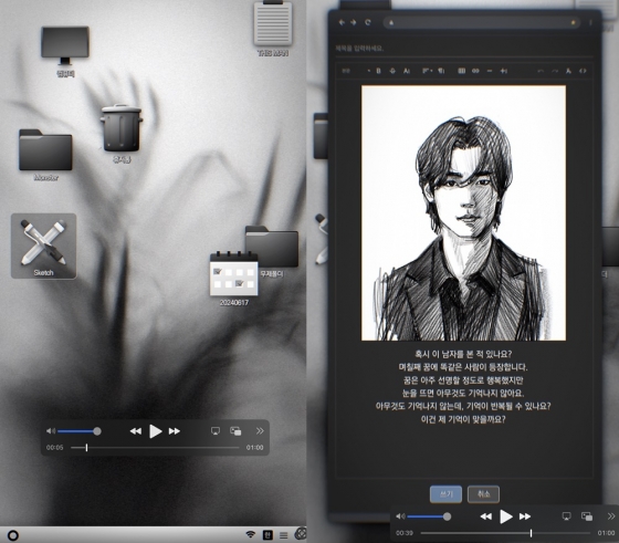 영상에는 한 남자의 몽타주를 그리는 과정이 1인칭 시점으로 담겼다. 그림 속 남자의 얼굴은 왼쪽과 오른쪽이 미묘하게 다르다. 한쪽 얼굴은 짙은 쌍꺼풀과 긴 속눈썹, 올라간 입꼬리가 도드라져 정한을 떠올리게 한다. 반면 날렵한 눈매에 곧은 코, 일자 턱이 돋보이는 반대쪽 얼굴은 원우를 닮아, 누구를 표현한 몽타주일지 호기심을 자극한다.