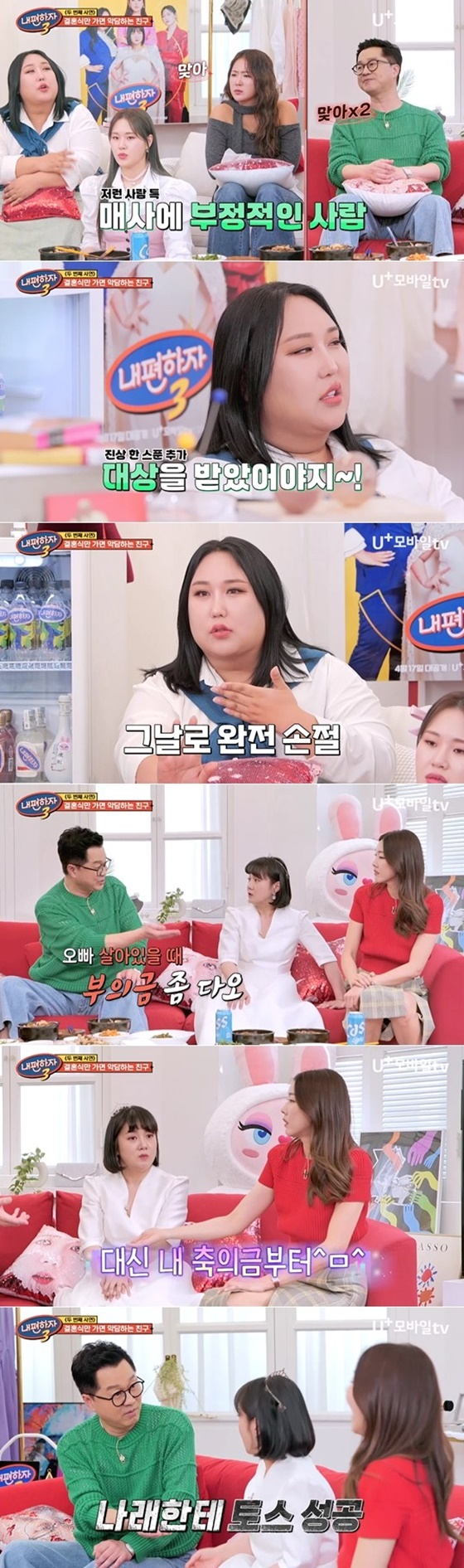 30일 공개되는 LG U+모바일tv 오리지널 예능 '믿고 말해보는 편-내편하자' 시즌3(이하 '내편하자3')에서는 풍자의 무한 공감을 불러온 '결혼식만 가면 악플러 되는 친구' 사연이 소개된다.