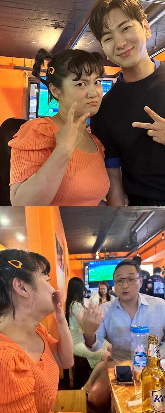이어 "주승아 멋지구나. 구 오라버니 정말 웃기셔"라고 덧붙이며 '다우렌의 결혼'에 출연한 이주승 구성환을 응원했다. 또 다른 사진 속에는 뒤풀이에 참석한 듯한 박나래의 모습이 담겨있으며 그는 이주승 구성환과 인증샷을 남겼다.