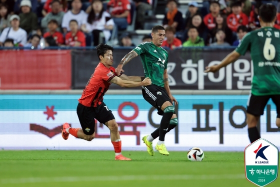 강원은 수적 우위를 바탕으로 공세를 강화했다. 후반 22분 김대우의 중거리 슈팅이 정태욱 몸에 맞고 아웃됐다. 이어 황문기가 중앙선 부근에서 박스 바깥까지 드리블 돌파해 오른발 중거리슛을 때렸지만 정민기 골키퍼가 몸을 날려 쳐냈다.
