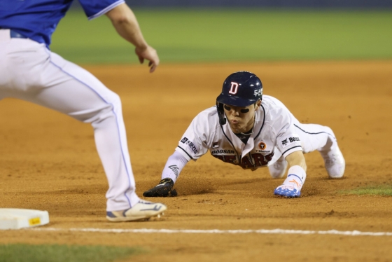 1루로 출루한다는 것 자체가 곧 2루타를 때려내는 것과 다름없는 선수가 있다. 엄청난 도루 페이스를 자랑하며 단독 1위까지 점프한 주인공. 바로 두산 베어스의 조수행(31)이다.