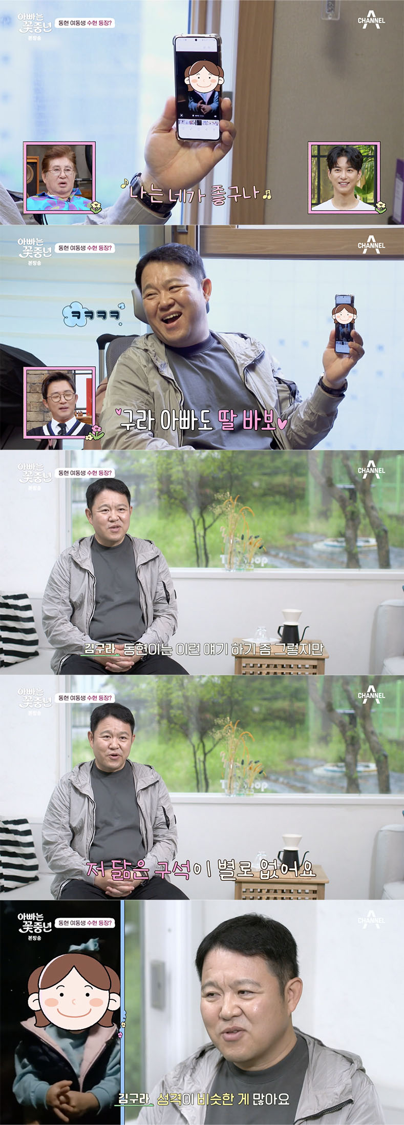 김구라는 "이런 얘기 하면 그렇지만 동현이는 저 닮은 구석이 별로 없었다. 성격도 저랑 다르다. 근데 저희 막내딸은 저랑 비슷한 게 많다. 성격도 저랑 비슷하다. 성격이 있고 집요하다"라며 막내 딸에 대해 이야기하며 '광대 승천'한 모습을 보였다.