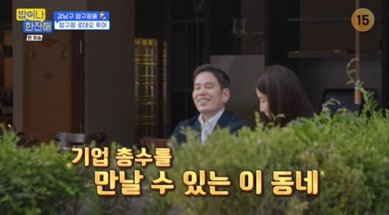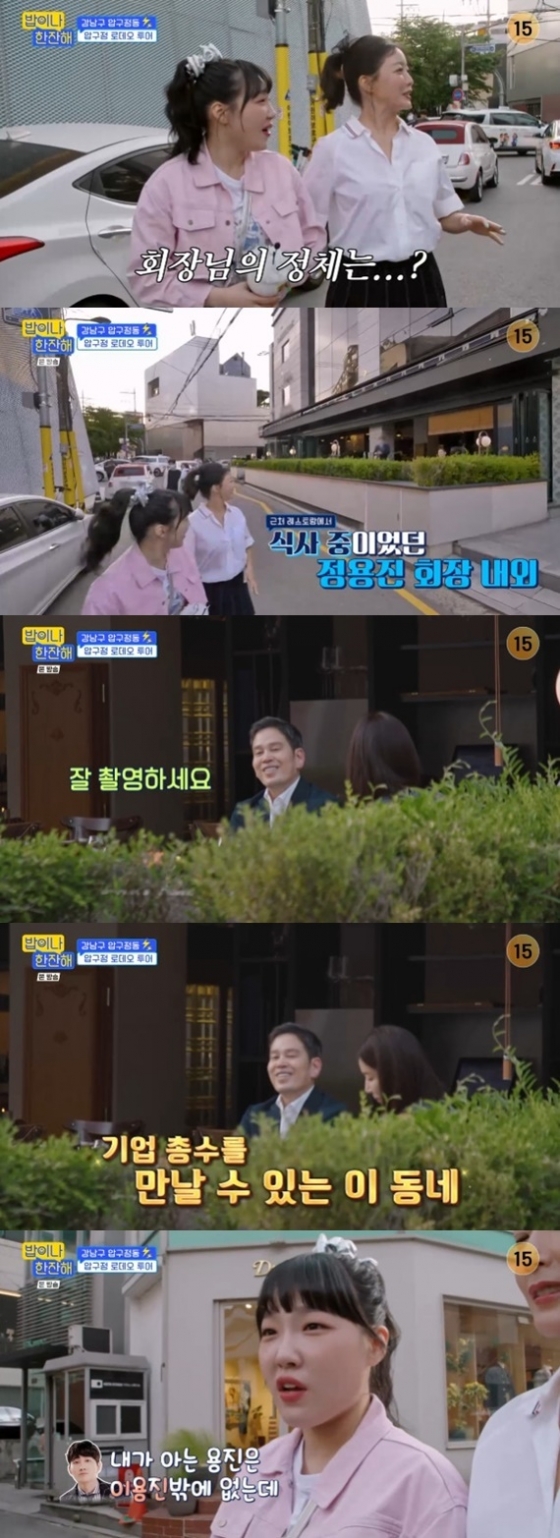 이때 정용진 회장 내외가 포착, 놀라움을 자아냈다. 그가 한 음식점 테라스에 앉아 아내와 식사 중인 모습이 우연히 카메라에 담긴 것. 정 회장은 김희선, 이은지에게 "잘 촬영하세요"라고 여유롭게 인사를 건네 눈길을 끌었다.
