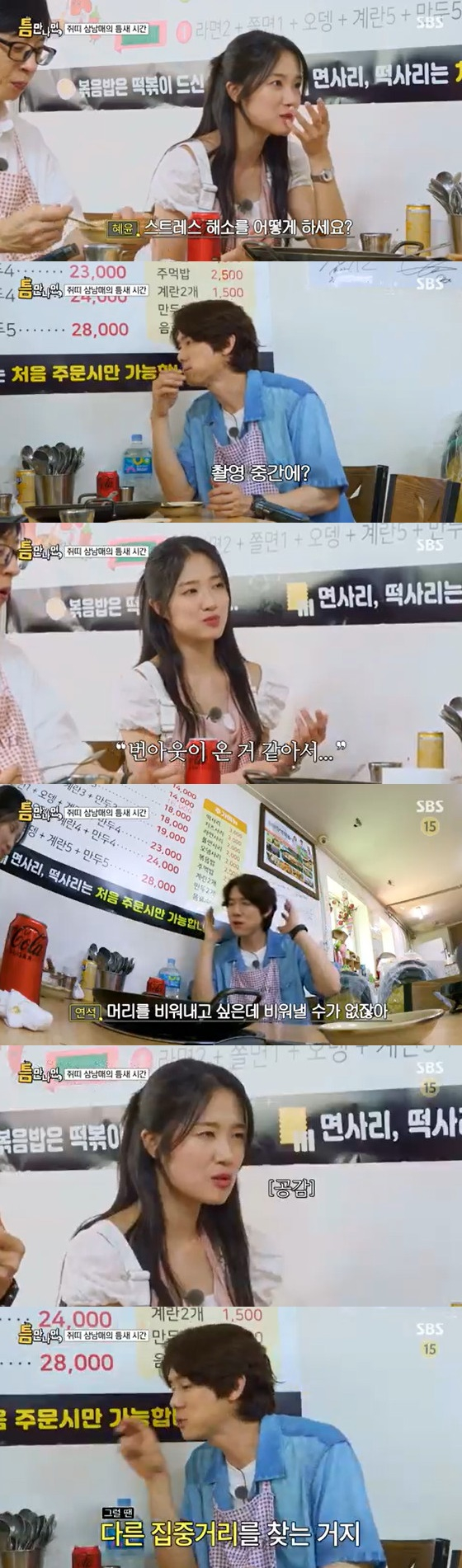 뿐만 아니라 김혜윤은 "제가 생각하기에 번아웃이 온 거 같다"라고 솔직하게 고백하기도. 그러면서 그는 유연석에게 "선배님은 스트레스 해소 어떻게 하시냐. 촬영 중간에 지치거나 기운이 빠질 때"라며 조언을 구했다.