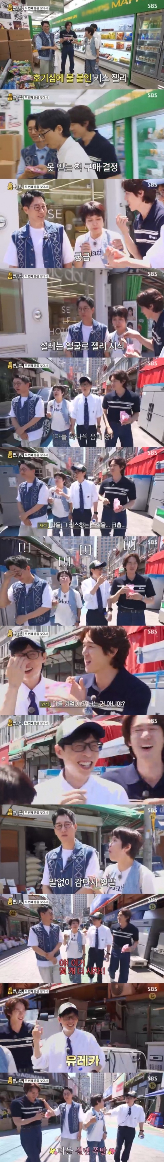 즉석에서 구매한 '키스 젤리'를 먹으면서 길을 걷던 네 사람은 누가 먼저랄 것도 없이 동시에 눈을 마주쳤다. 유재석이 "다 키스 느낌을 찾으려고 하는 중이다"라고 말하자 유연석이 "혹시 너무 오래된 거냐"라고 물었다.