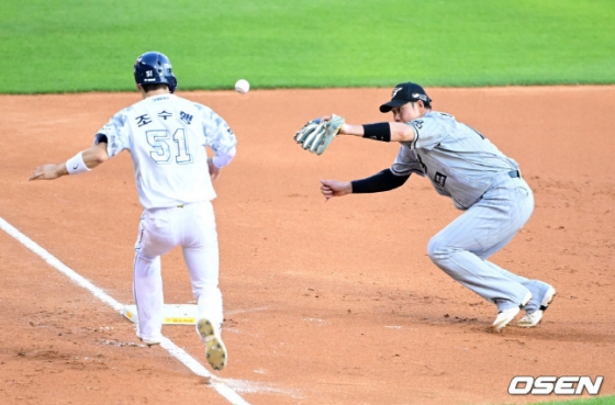 그러나 8회말 조수행의 내야 안타 이후 1루수 땅볼을 김태연이 빠뜨리며 타구가 외야로 흘렸고 그 사이 1점을 더 내줬다.