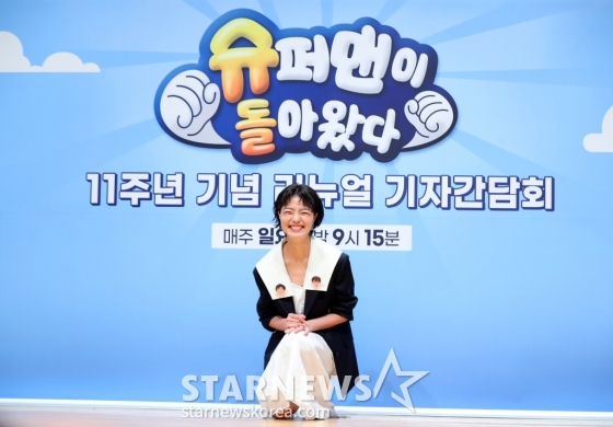 14일 오전 서울 영등포구 KBS 신관 아트홀에선 KBS 2TV '슈퍼맨이 돌아왔다'(이하 '슈돌') 11주년 기념 리뉴얼 기자간담회가 열렸다. 연출자 김영민 PD를 비롯해 '새로운 안방마님' 최지우·안영미, 출연자 제이쓴 등이 참석했다.