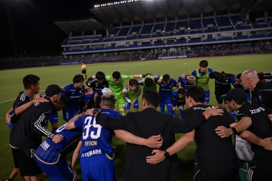 마치다 선수들이 승부차기 중 함께 어깨동무를 하고 있다. /사진=마치다 젤비아 공식 사회관계망서비스(SNS)
