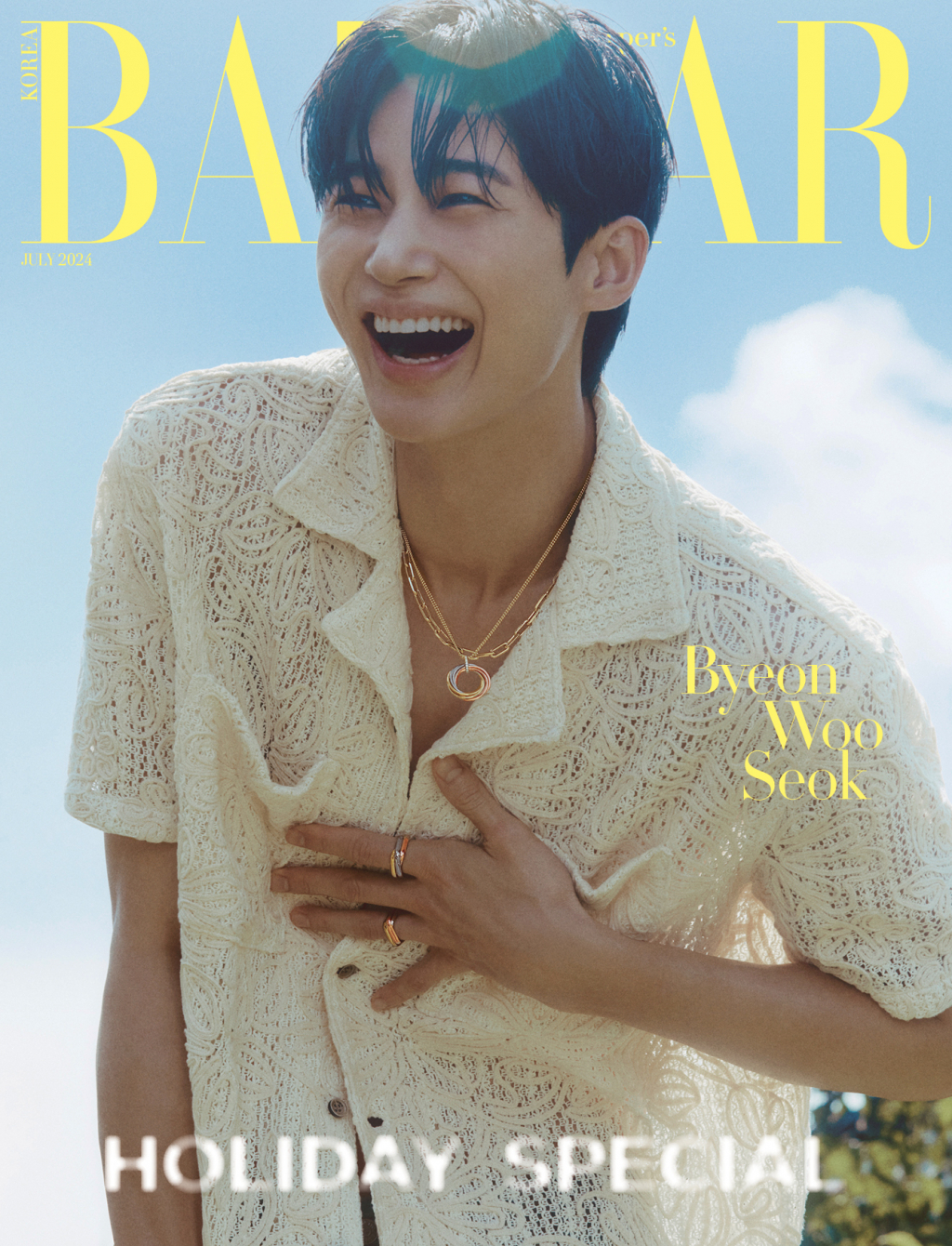 변우석의 커버와 화보, 책 속에 숨겨진 인사이드 커버, 그리고 인터뷰 및 영상은 '하퍼스 바자' 7월호와 웹사이트, 공식 SNS에서 만나 볼 수 있다.