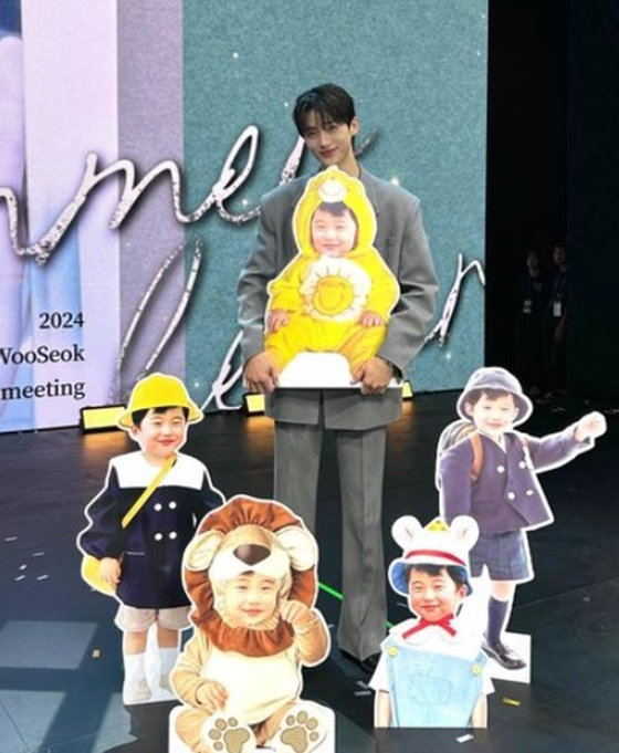 공개된 사진 속 변우석의 어린 시절의 모습이 담긴 등신대와 함께 포즈를 취했다. 어린 시절부터 완성형 미모를 자랑해 눈길을 끌었다.