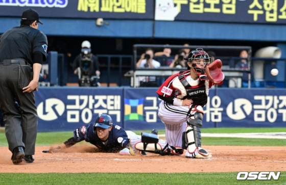 하지만 야구는 끝날 때까지 끝난 게 아니었다. LG도 끝까지 추격전을 펼쳤다. 8회말 1사 후 박해민이 우익수 방면 2루타를 터트린 뒤 투수 구승민의 폭투 때 3루까지 갔다. 이어 신민재의 2루수 방면 깊은 내야 안타 때 박해민이 득점했다.(8-4) 구승민이 다음 타자 홍창기를 상대로 볼 1개를 던지자 롯데는 김상수를 투입했다. 홍창기가 김상수를 상대로 중전 안타를 치며 1, 2루 기회를 잡은 뒤 문성주가 좌전 적시타를 치며 8-5까지 추격했다. 여기서 LG는 클로저 김원중을 투입하는 승부수를 띄웠다. 5아웃 세이브 상황. 김원중은 마운드에 오르자마자 김현수를 삼진 처리하며 한숨 돌렸다.