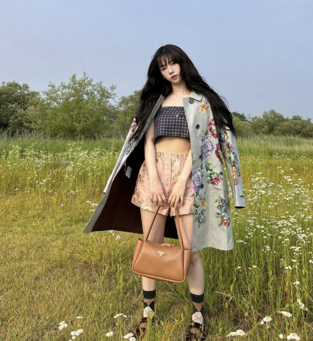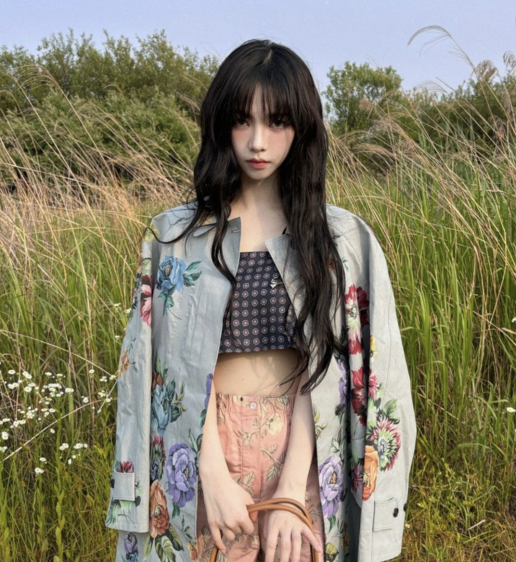 공개된 사진 속 카리나는 플라워 패턴의 아우터를 걸친 채 들풀 숲 안에서 포즈를 취하고 있다. 그의 또렷한 이목구비와 치명적인 표정이 보는 이들의 시선을 사로잡는다.