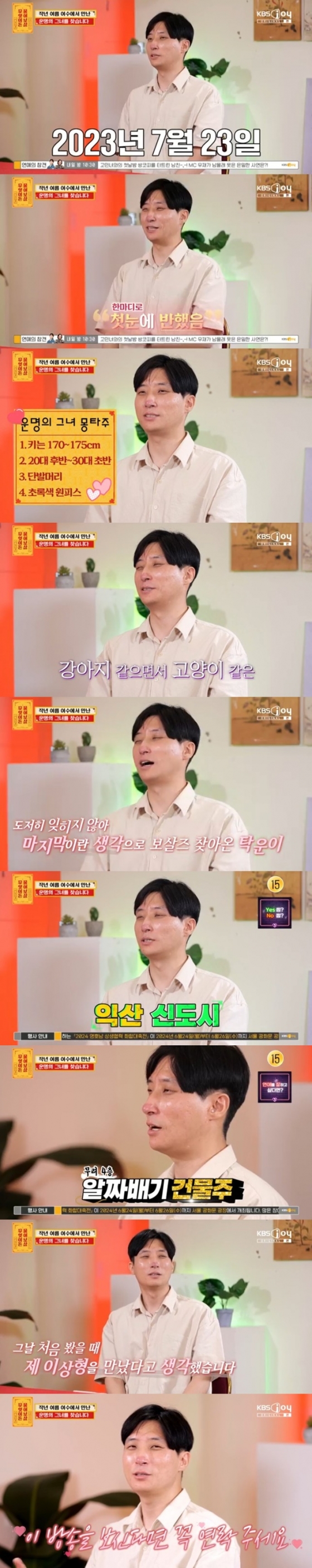 17일 오후 방송된 KBS JOY 예능 프로그램 '무엇이든 물어보살'에는 지난해 7월 여수 여행에서 만난 운명의 상대를 찾고 싶어서 출연한 사연자의 이야기가 공개됐다.