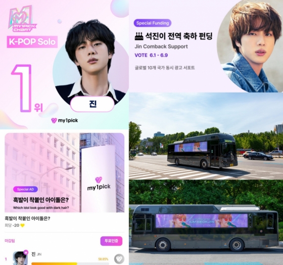 진은 앞서 마이원픽 'K-POP 개인 부문' 5월 총 누적 하트수 3426만 7673개를 얻어 월간랭킹 1위까지 휩쓸며, 올해 1월부터 5월까지 5개월 연속 월간랭킹 1위를 기록 중이다.