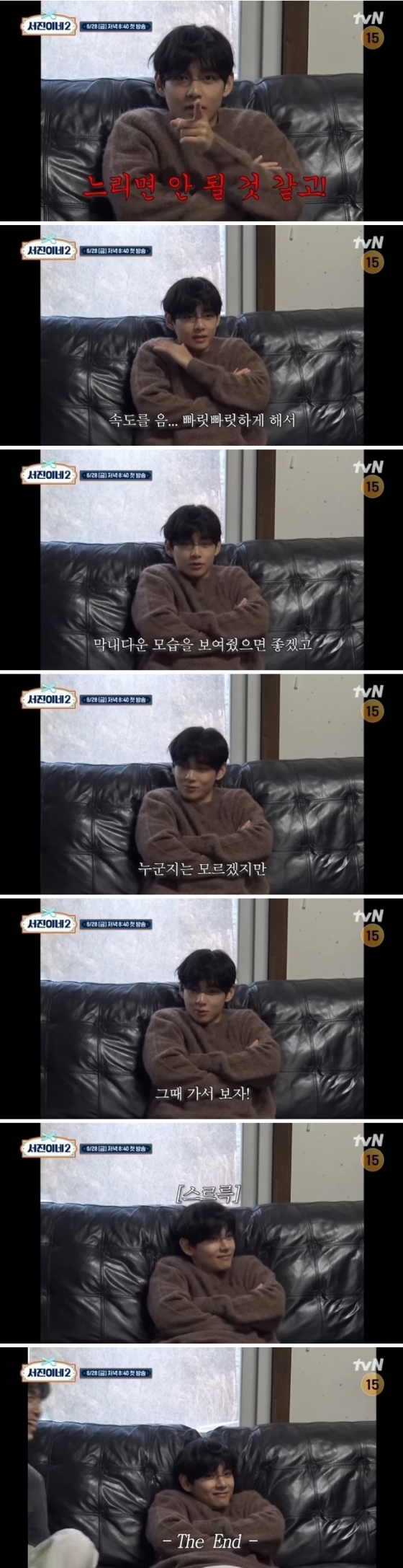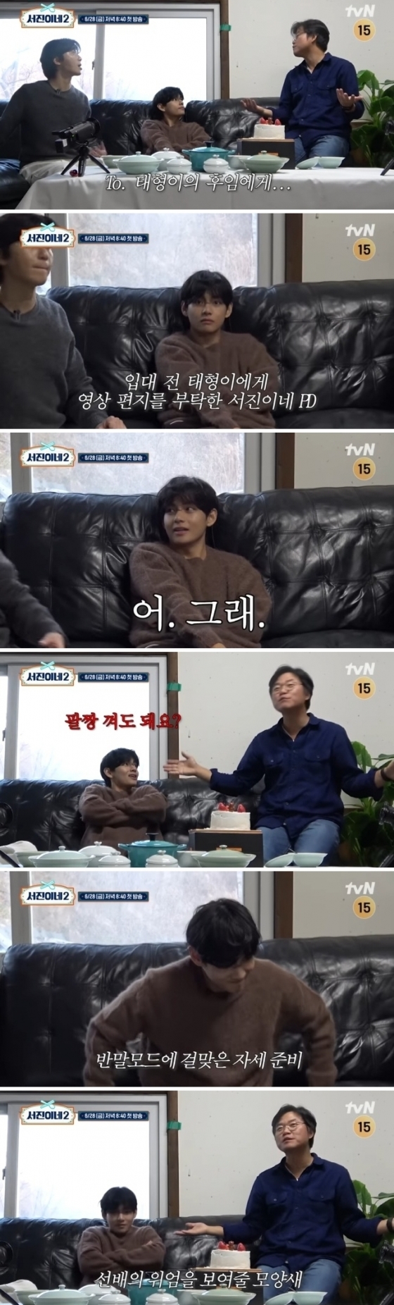 서진이네 추억토크 중 군복무로 '서진이네' 시즌2는 함께하지 못하는 뷔가 "그래도 기대됩니다. 진짜 서진이네 2, 제 후배 하나 생긴다고 하니까"라고 말했다. 이에 나영석 PD는 '서진이네' PD가 부탁했다며 후임에게 남길 영상편지를 부탁했다.