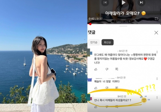 다음 날인 18일 많은 댓글이 달린 가운데 "언니 혹시 어깨 필러 하셨을까요?"란 말이 눈길을 끌었다.
