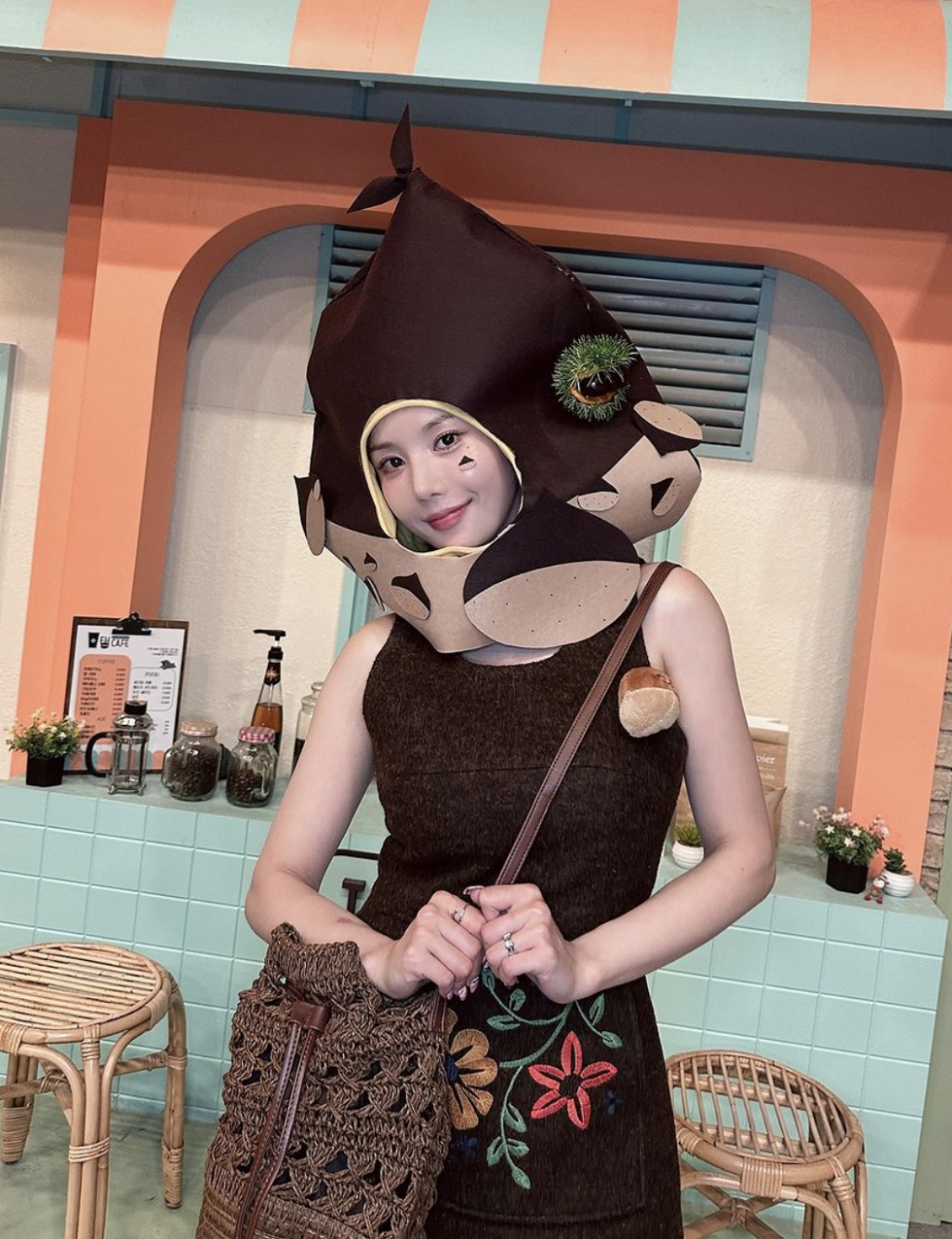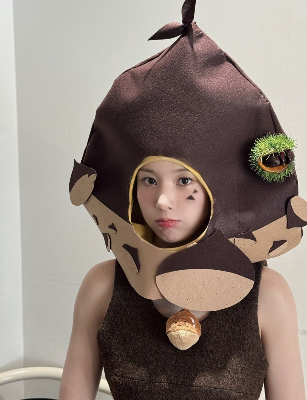 공개된 사진 속 권은비는 잘 익은 '가을 햇밤'을 연상시키는 인형 탈을 쓴 채 카메라 앞에서 '깨발랄'한 포즈를 취하고 있다. 인형 탈을 썼음에도 굴욕 없는 비주얼과 몸매가 돋보이며, 보는 이들의 시선을 사로잡았다.